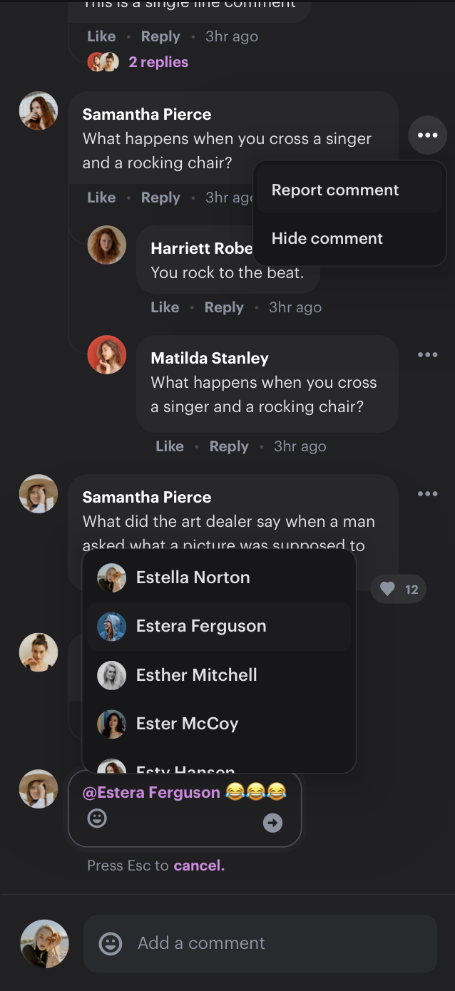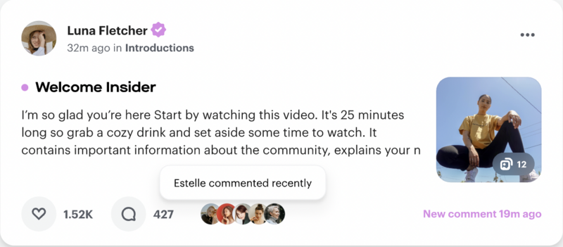 Get to know your fellow community members instantly with profile pop-ups on hover.