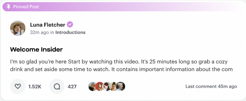 Our redesigned pinned posts feature lets you highlight what matters most, keeping your community up-to-date effortlessly.